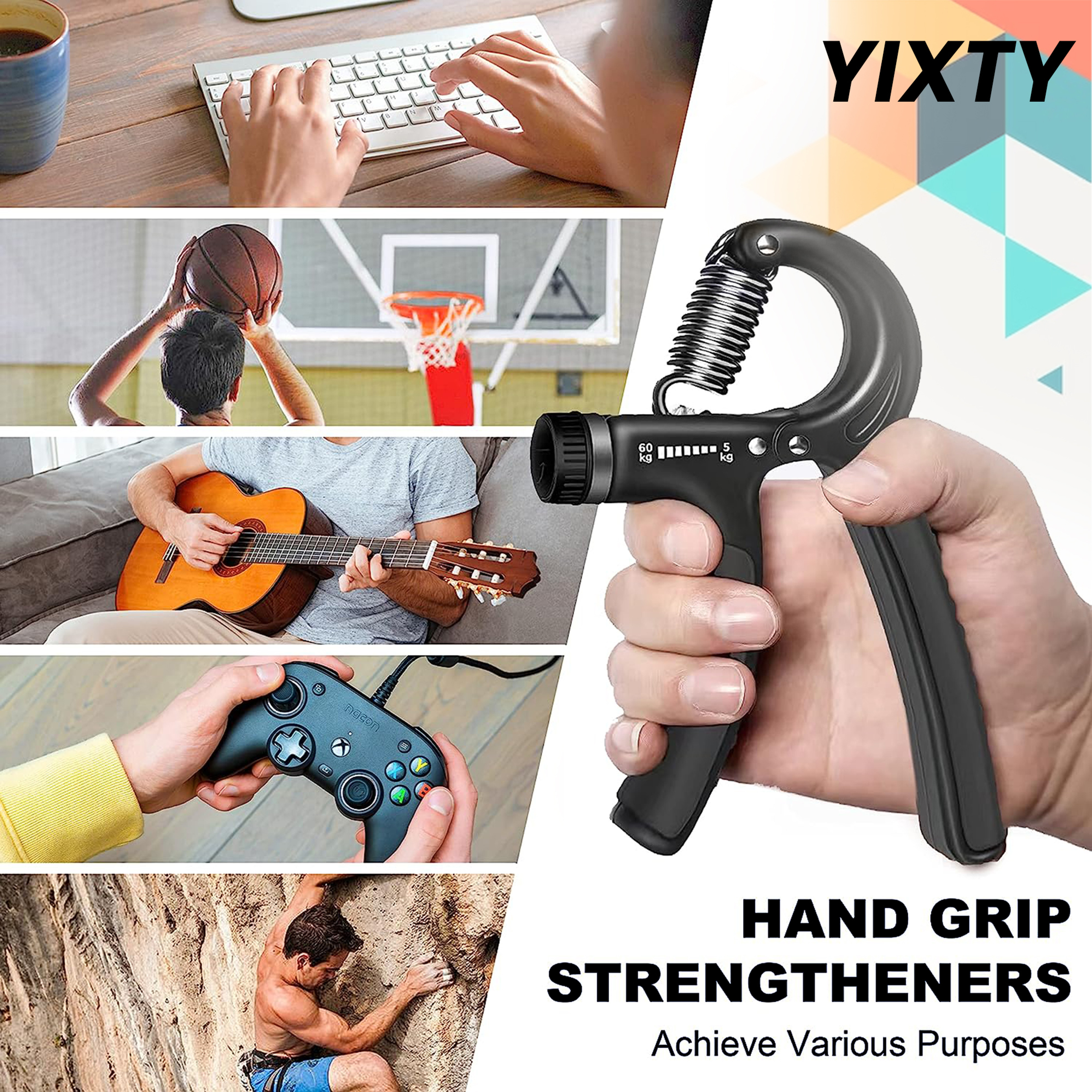 Gym Fitness Hand Grip Men Adjustable Finger Heavy Exerciser Strength for Muscle Recovery Hand Gripper Trainer strengthener (1 Pc)
