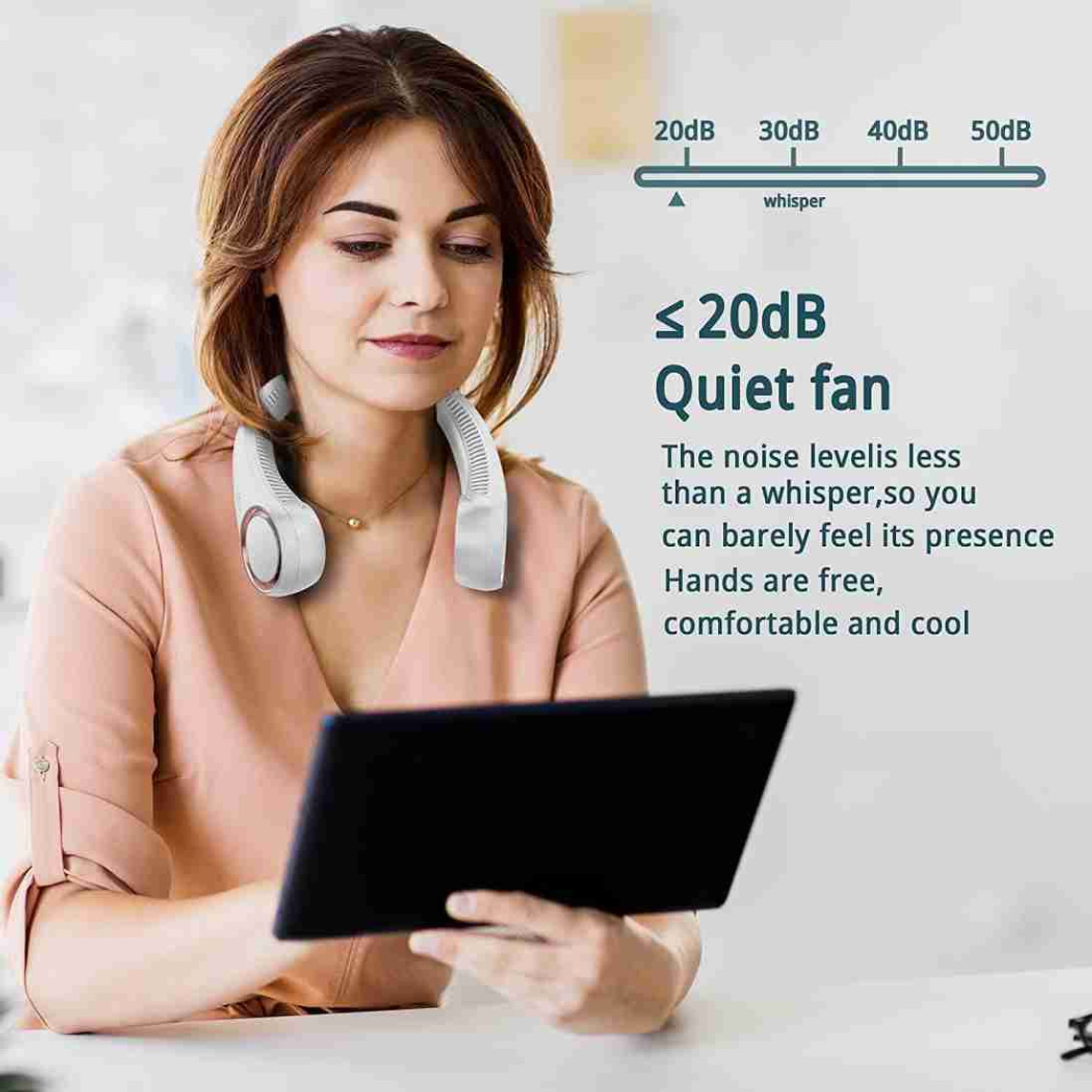 Unlike traditional fans, this wearable fan has a bladeless design, making it safe for children, long hair, and clothing. You can comfortably use it while working, cooking, or exercising without worrying about hair getting caught.